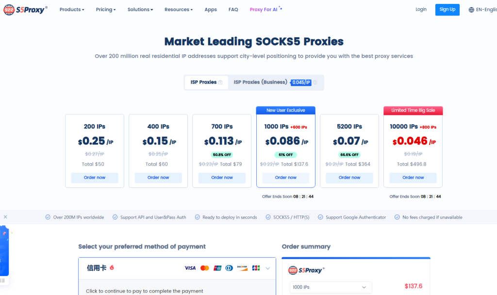 ISP ProxyThese proxy pools contain 200 million IP addresses, covering more than 190 countries/regions, and the IP balance never expires, which is suitable for users who need to use proxies in the short term, such as individuals and small businesses.$0.045/IP