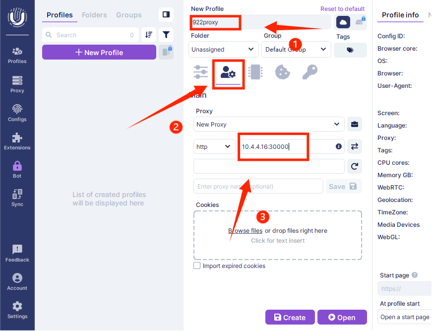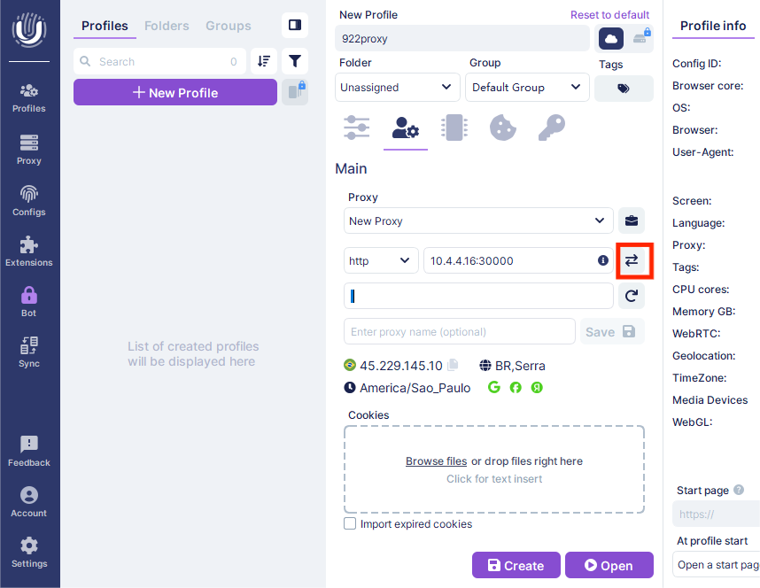 Click the “Create” button to complete the proxy file creation. Then click “Open” to open the web page, and then you can start your proxy journey.
