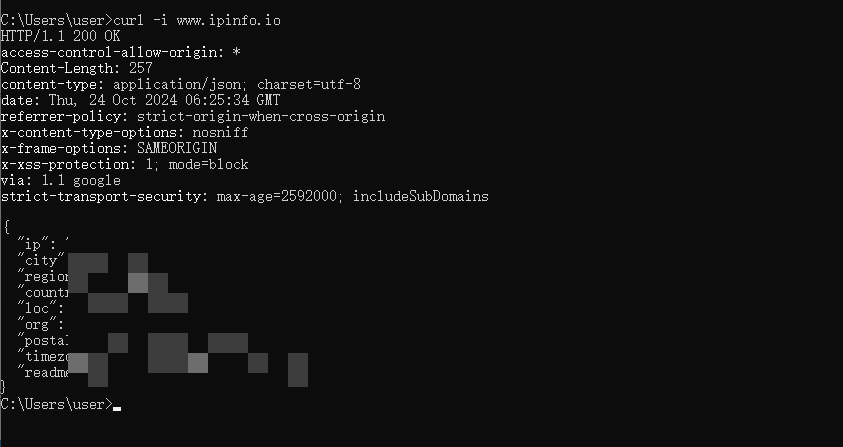 curl -i www.ipinfo.io