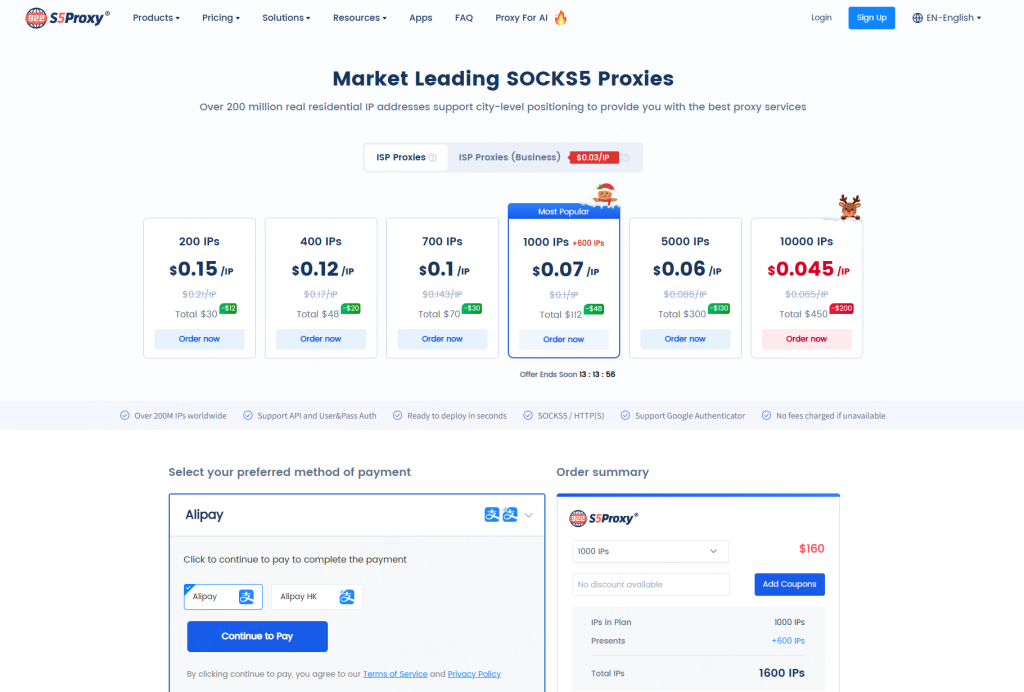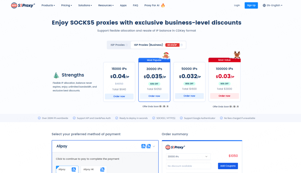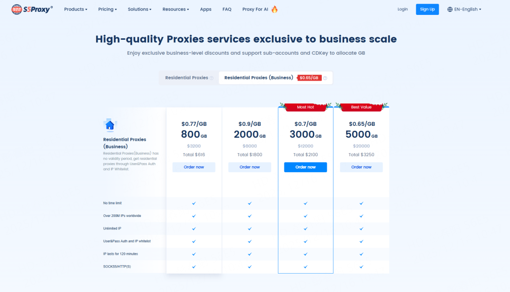 - SOCKS5 Proxies: Starting at $0.03/IP
