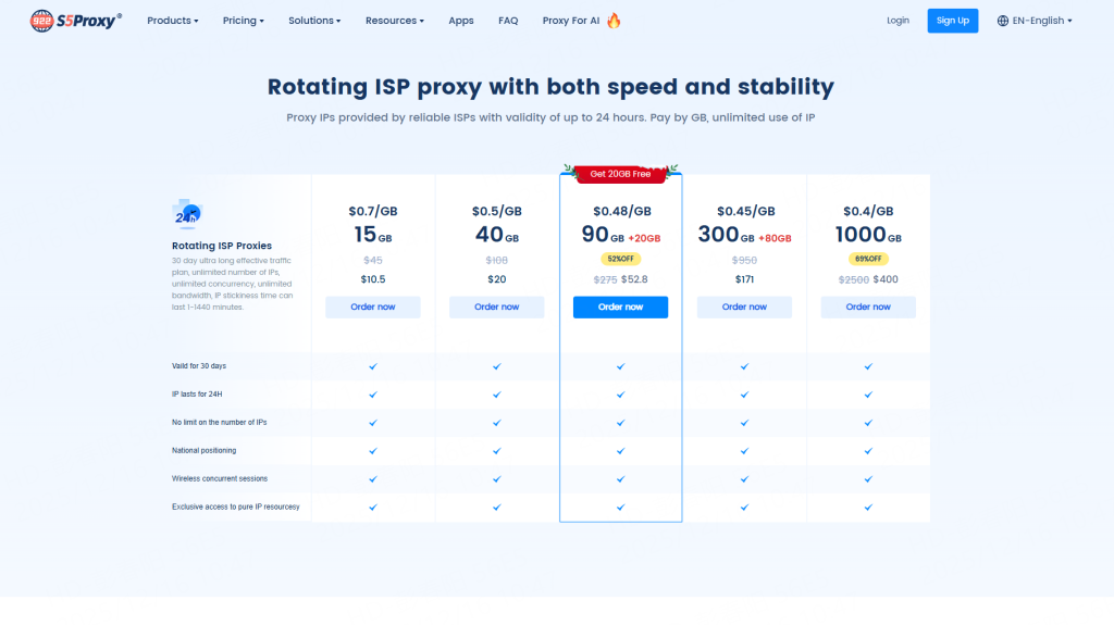 - Rotating ISP Proxies: Starting at $0.4/GB